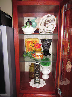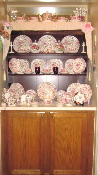 display of my tea cup and milk glass collections